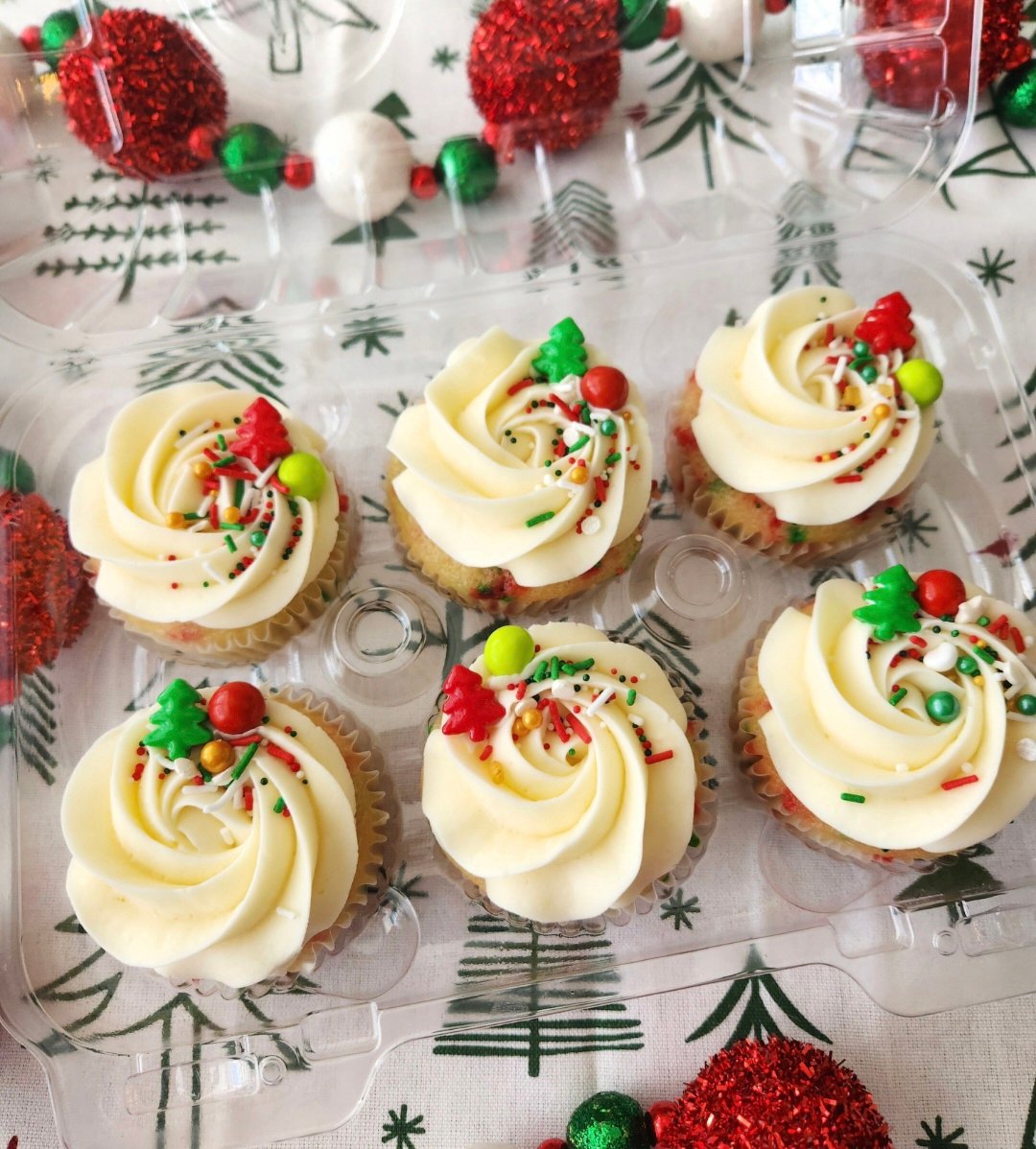 Can choose between vanilla, chocolate or a mixed set. Cupcakes will come topped with my vanilla buttercream and festive sprinkles. Cupcakes will come with tag and ribbon.